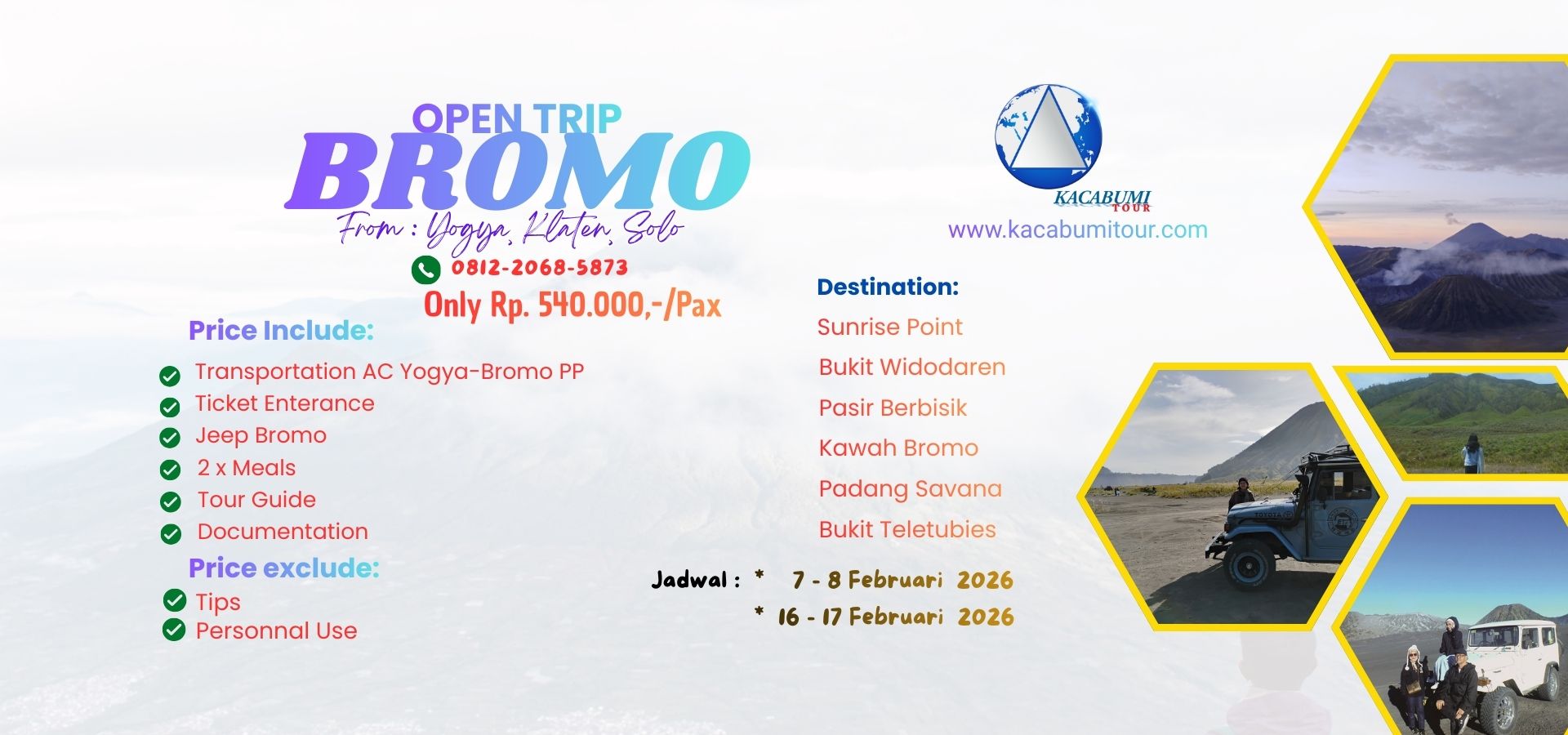Experience a pleasant, safe, and unforgettable journey with Kacabumi Tour.